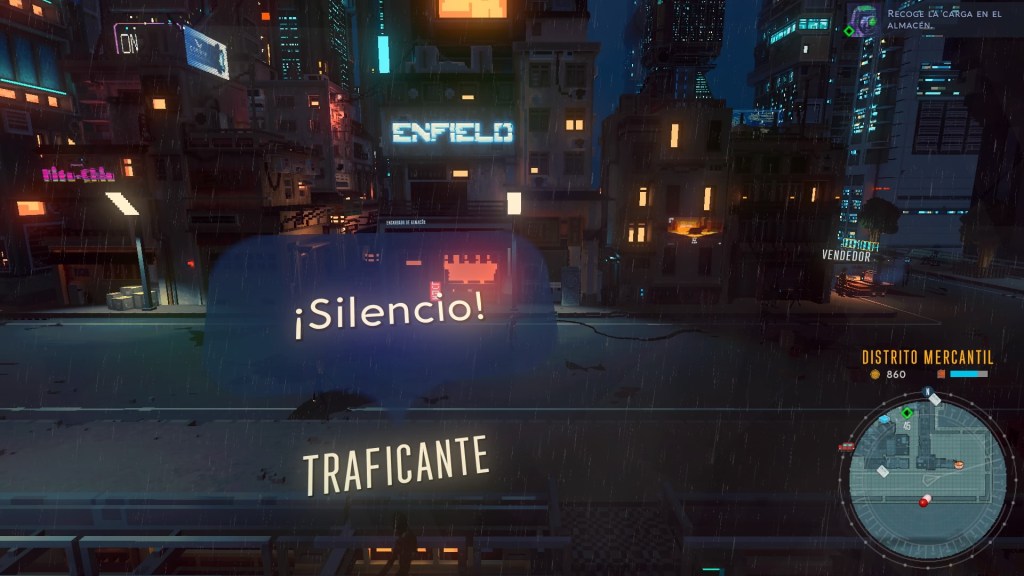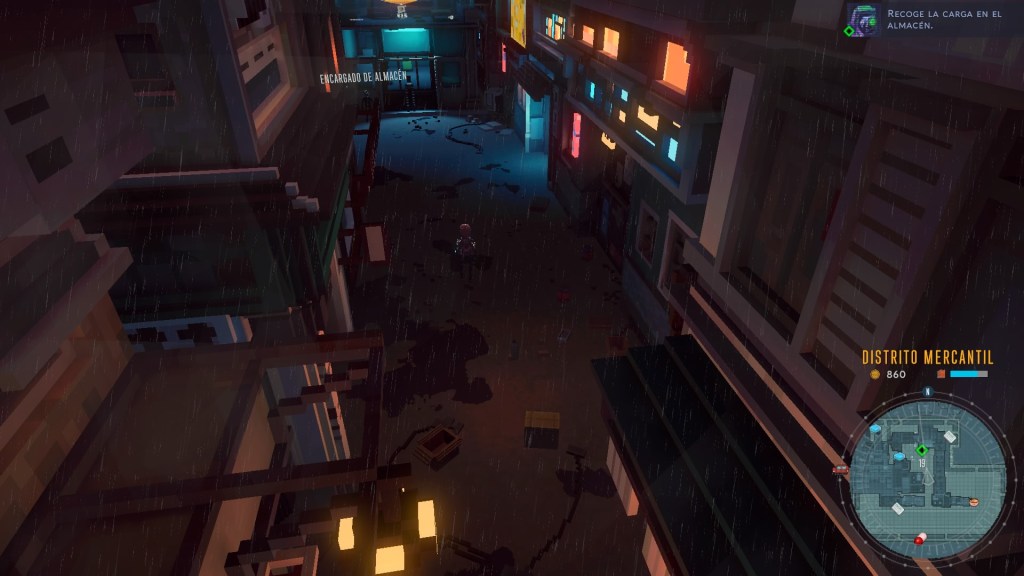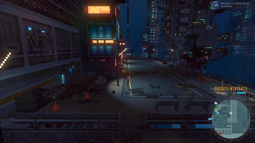 Pero no es el momento de referirnos a la obra o a ese otro juego, ya vendrá después. Por ahora hay que permanecer en el ánimo de los futuros distópicos con Cloudpunk. Rania recién llegada a la ciudad en las nubes llamada Nivalis, como todos aquellos que viven en estas estribaciones del futuro debe procurarse sustento y la mejor forma, o más inmediata, consiste en un trabajo como courier para la empresa de entregas Cloudpunk. La consigna del trabajo ces recoger un paquete en un punto y dejarlo en otro que será indicado al recibirlo, un valor importante para quienes hacen dichas entregas es no hacer preguntas respecto a lo que se va a entregar, sin embargo eso no parece preocuparle mucho ni a Rania ni a Camus, su asistente virtual con forma de perro, quienes se cuestionan constantemente los motivos de las entregas así como el contenido de los mismos.