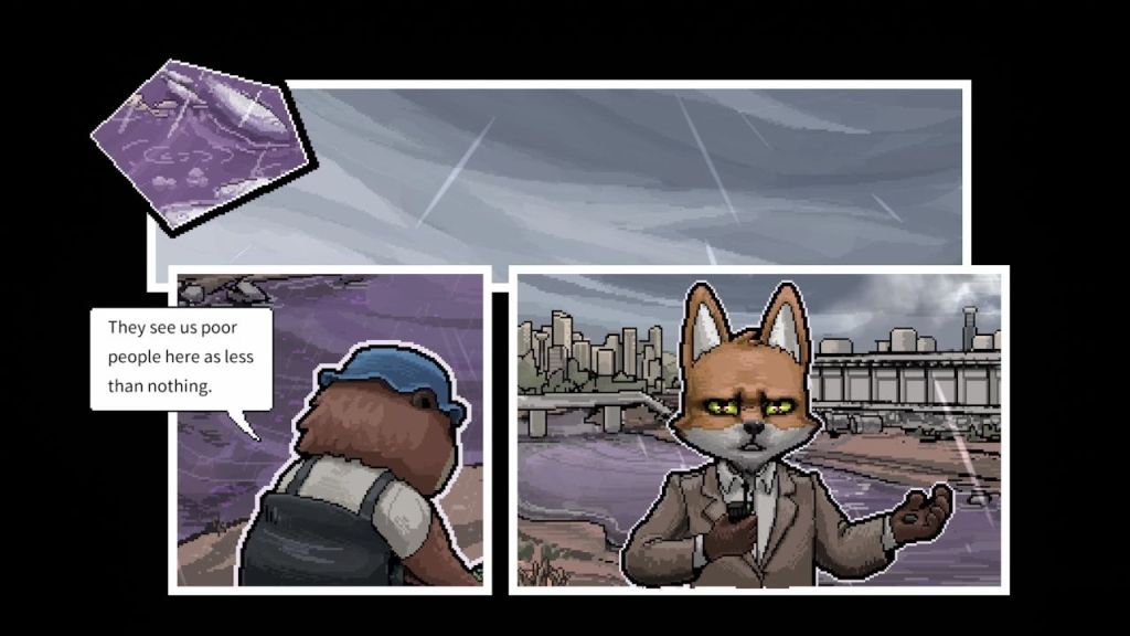 Bueno, en realidad esa es una de las dos opciones principales con las que puedes comenzar la creación de tu personaje: por un lado el ya mencionado zorro periodista, Thomas, que por investigar la relación entre el alcalde, una fábrica y problemas ambientales acaba condenado a la cárcel; o bien Bob, un policía pantera negra (sí, a mí también me pareció una combinación curiosa) encubierto que se infiltró en el penal para obtener información.